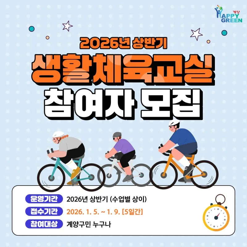 2026년 상반기 생활체육교실 참여자를 모집합니다!