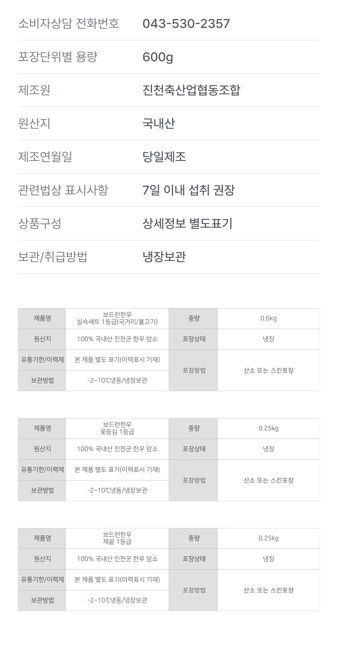 보드런한우 1등급 실속 국거리용, 단품 구이용