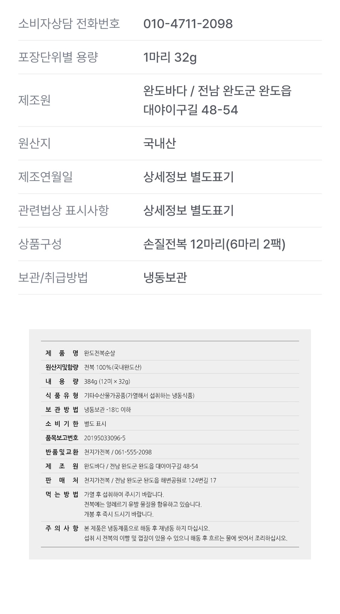 있습니다. 특히 천지가 전복은 청정해역 완도에서