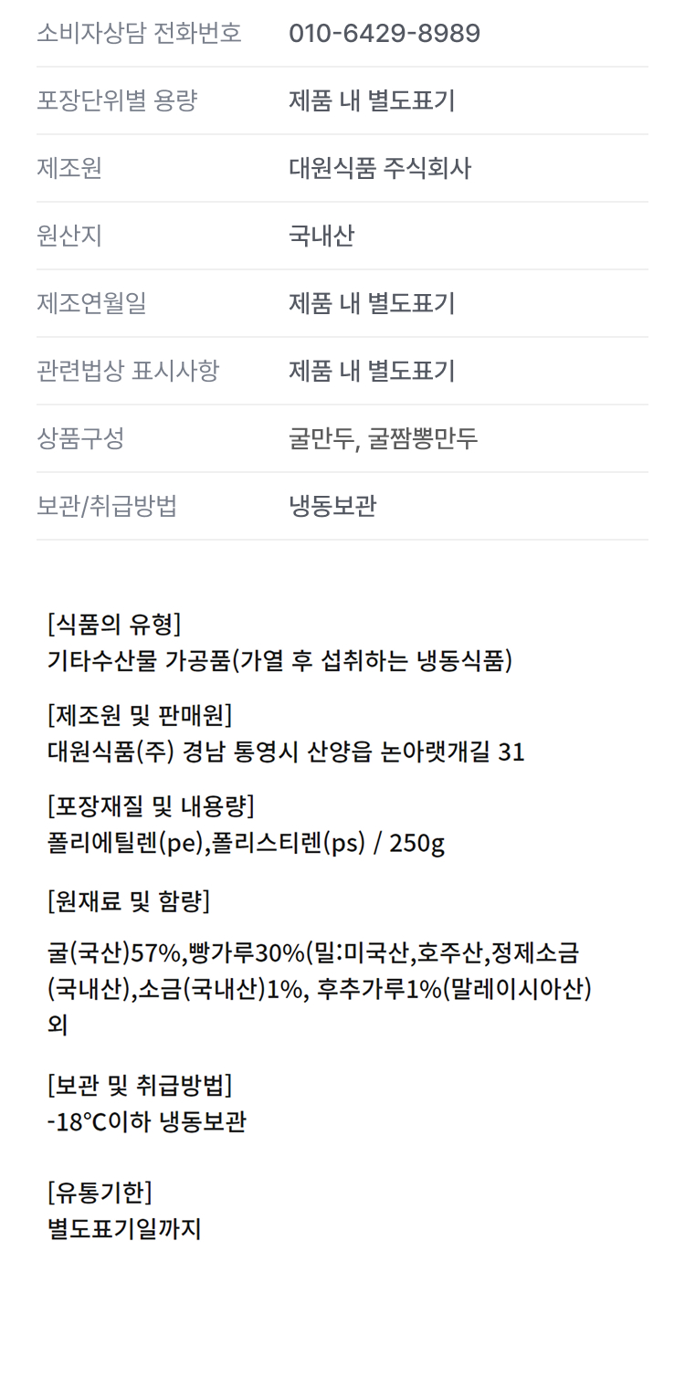 경남 통영시 산양읍 논아랫개길 31 대원식품판매자 고객센터