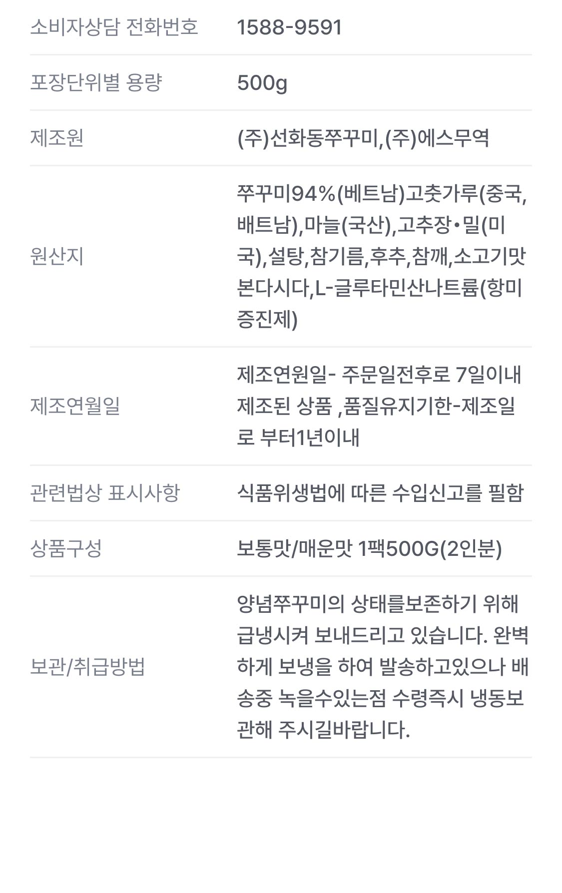 영양만점 쭈꾸미 위생적인 제조환경 맛있고 기분좋게 매운 -18도 이하 냉동 보관