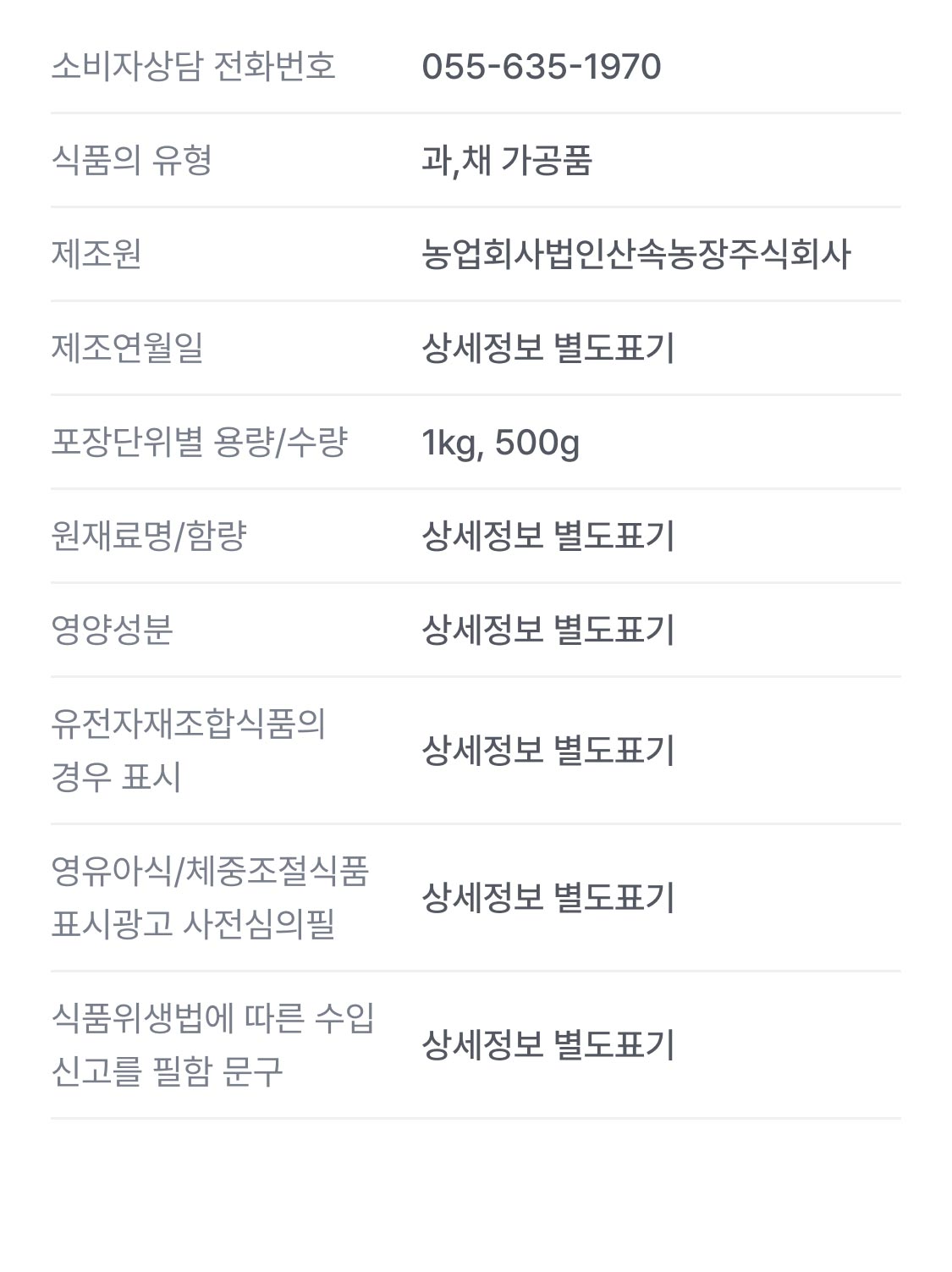 경남 거제시 장목면 거제북로 1290-22 산속농장주식회사판매자 고객센터